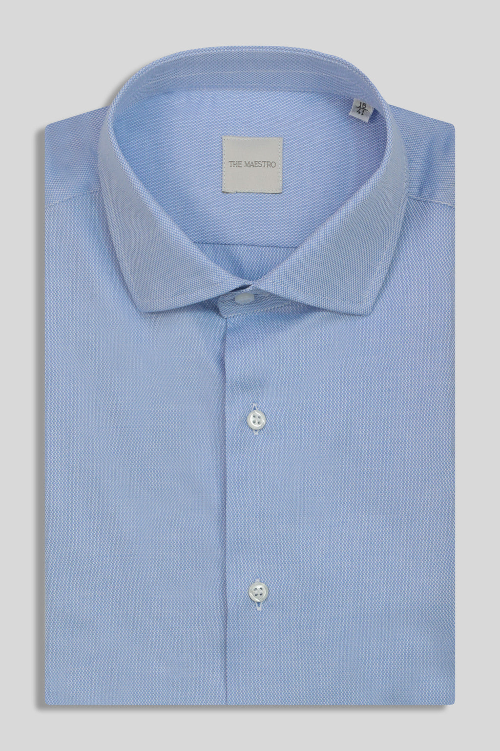 Camicia con colletto classico e texture micro-nido d'ape, pensata per un look sobrio ma ricercato. Il tessuto leggermente strutturato aggiunge profondità e carattere, mantenendo un'eleganza adatta sia all'ufficio che al tempo libero.