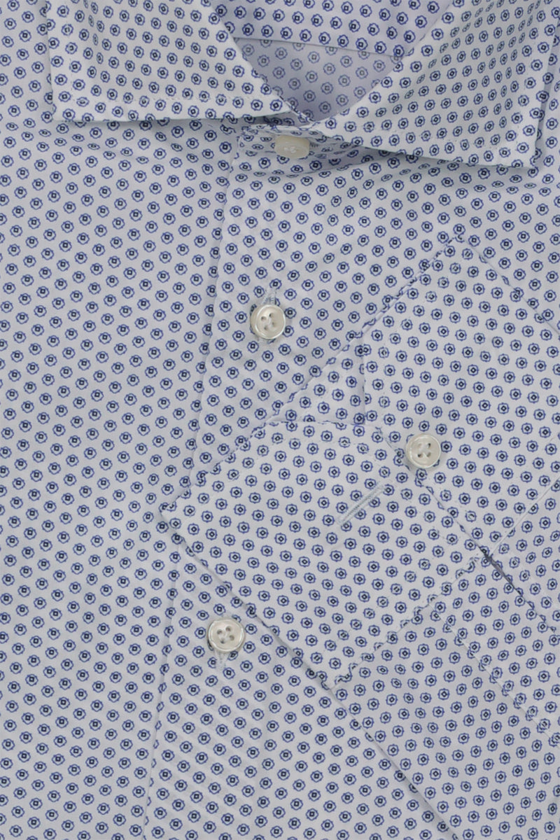 Perfetta per chi ama un'eleganza discreta con un tocco di originalità, questa camicia si distingue per la sua fantasia geometrica raffinata. Il tessuto leggero e traspirante garantisce un comfort ottimale, rendendola ideale per essere indossata tutto il giorno. Versatile e sofisticata, si adatta sia a look formali che a combinazioni più casual, per un outfit sempre curato e distintivo.